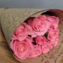 На фото букет из 9 коралловых роз. В составе: роза 9 шт, крафт-бумага 1 шт, атласная лента 2 шт, . Все цветы свежие и ароматные, букет красиво оформлен и отлично подходит для подарка. Доступна доставка цветов или самовывоз.